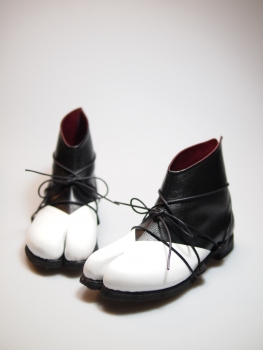 足袋とは、草履、下駄、雪駄などを履く際に用いる為、親指と人差し指で袋が二つに分かれているものをいいます。今では布製がほとんどですが、江戸時代初期までは革製が主でした。「皮足袋」は武士を中信に合戦や鷹狩りなどに履かれていましたが、戦乱が収まるにつれて平時でも着用される用になりました。布製の普及で姿を消してしまいましたが、革靴屋が「革足袋」を作るべきだと思い作成しました。五枚丈とは本来足袋などの合わせ目を留める爪形の金具である「鞐(こはぜ、小釣)」の五枚分の丈のことです。伝統に新しい正装を提案したい。この出過ぎた行為の第一歩がこのデザインです。