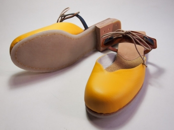 ほとんどの商品がユニセックスの吉靴房の中で、ミュールは女性向けの特別なデザインです。一見靴とは縁遠い言葉に感じる「帯締め」をモチーフとした今作。着物の帯の上に締める紐のように足の甲を優しく押さえ、お好みの履き心地に”きゅっ”と締めることができます。履き口は花びらからイメージした独特のカーブをもったラインで足がきれいに見えるデザインです。甲ベルトは金具をあえて使わないことで自由度が向上し、用途の幅が広がり、かかとのバックベルトとしても機能します。さらに紐を足首で結ぶことで違う表情にもなり、幅広いコーディネイトが可能です。爪先は丸みのあるコンフォートな形。全体的には着物のような直線を多用することで吉靴房らしいデザインバランスになっています。履物としては非常に珍しい多用途デザインのミュールは様々な場面で活躍すること間違いなしです。
